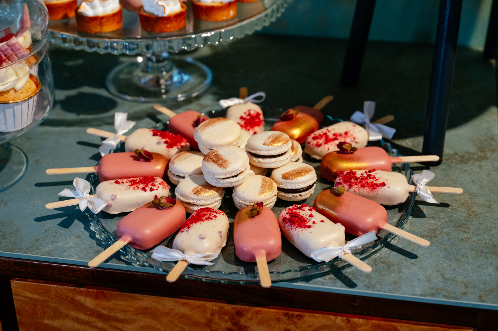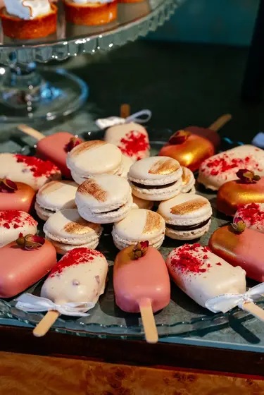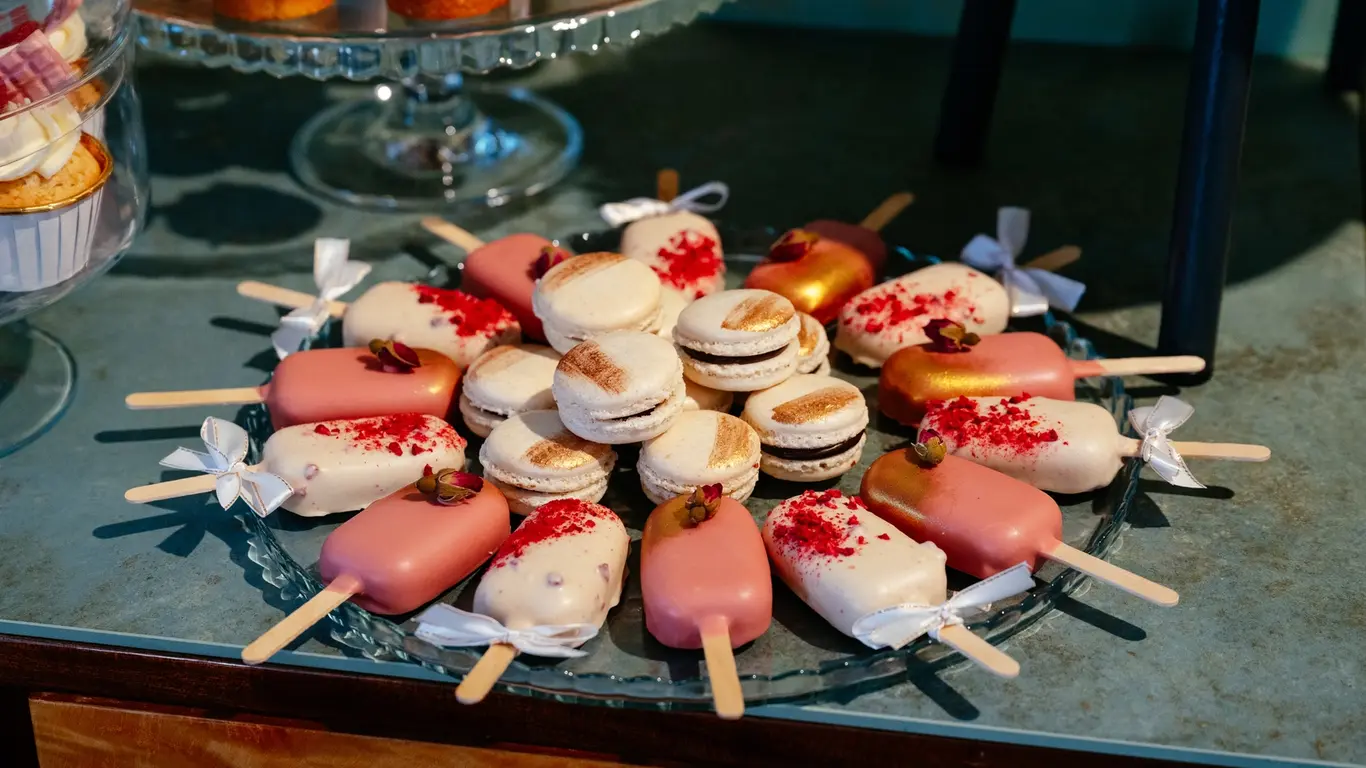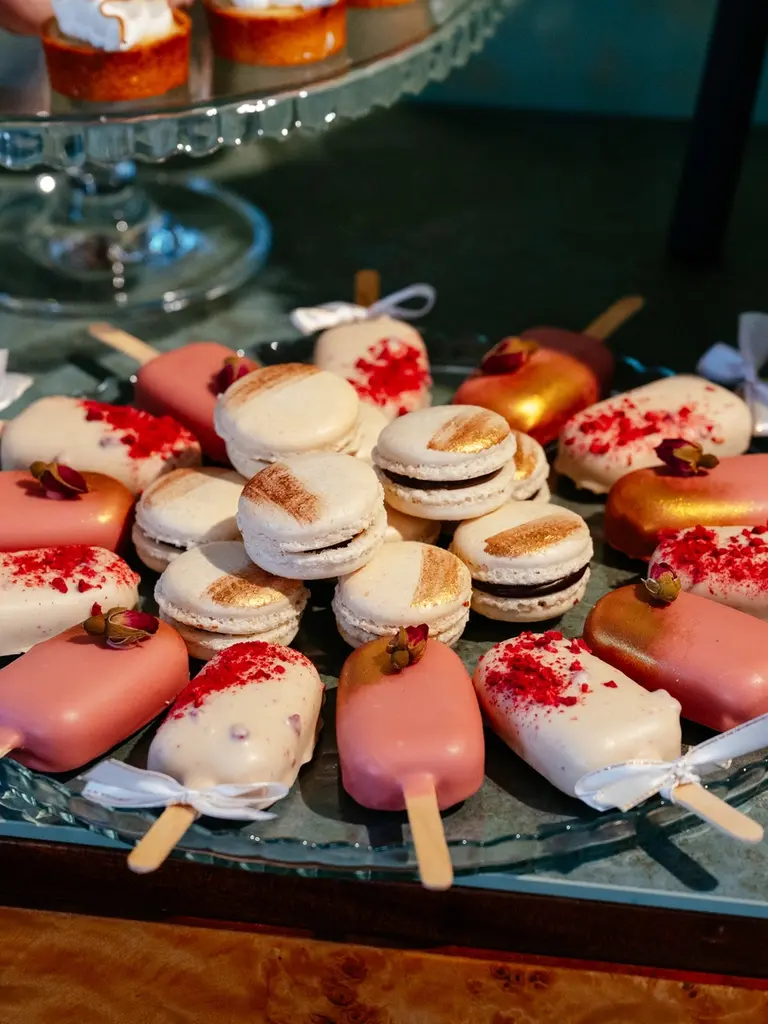 Starannie skomponowane desery, które łączą różnorodność smaków z elegancką formą. W ofercie znajdują się m.in. makaroniki, cake popsy i mini lody na patyku, a także klasyczne propozycje w nowoczesnym wydaniu – ptysie, panna cotta czy tiramisu. Uzupełnieniem są bezy pavlova, mini tartaletki oraz muffinki w różnych wariantach smakowych. Każdy słodki stół tworzymy indywidualnie, dbając o spójność i najwyższą jakość.